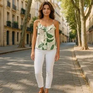 Milly Ruffle Cami Palm Print Tank Top Size 8 Summer Feminine Party