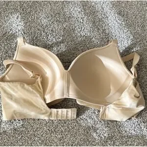 Truekind wireless bra in nude/beige, size Large. Features smooth, lightly lined molded cups with a seamless design for a clean look under clothing. Super comfortable with no underwire, making it perfect for everyday wear.