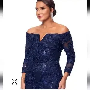 $359 XSCAPE Women Embellished Off-The-Shoulder 3/4-Sleeve Gown Sz 6 Wedding Glam