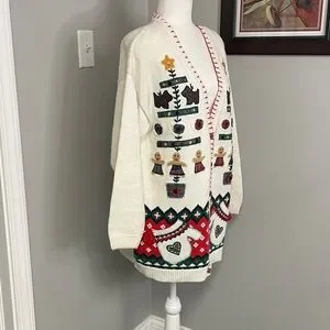 Beldoch Popper womens long cardigan vintage holiday christmas sweater size Large