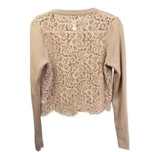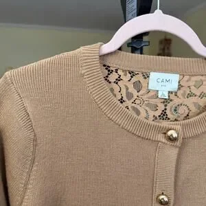 Cami NYC Aurla Wool Crop Cardigan Caramel Brown Size Large Feminine Lace Floral