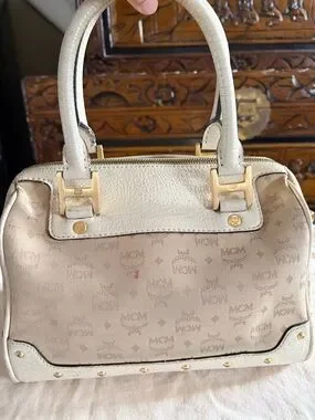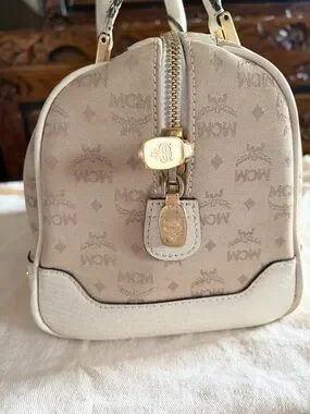 SALE MCM Cream and Beige Logo Satchel with Gold Hardware