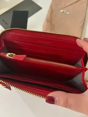 Miu Miu Glossy Red Quilted Zip Wallet with Front Pocket