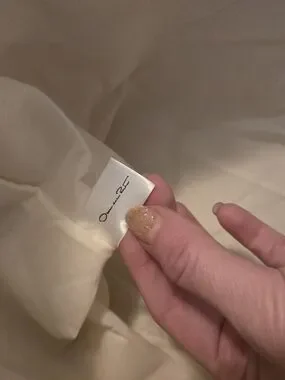 NWT Oscar Dela Renta Woven Cream Tote with Floral-Trim Handles