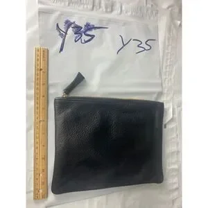 Black Leather Zippered Clutch Pouch Wristlet Tassel Accent