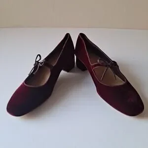 NWOB J. Crew Velvet Bow Tie Heeled Mary Janes Shoes Burgundy Red Women's Size 9.5