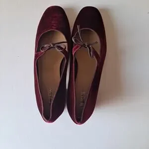 NWOB J. Crew Velvet Bow Tie Heeled Mary Janes Shoes Burgundy Red Womens Size 9.5
