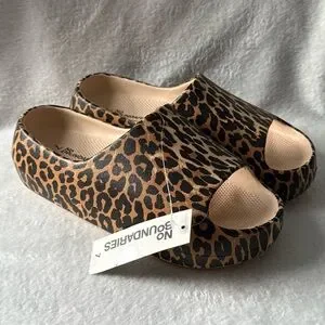 No Boundaries Cheetah Print Open-Toe Mules‎ Women’s Size 7 New Slides Platform