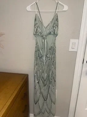 Betsy Adam Mint Green Pleated PROM Dress with Sequin Detail Size 0 Petite