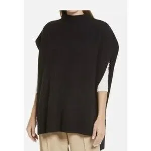Nordstrom womens black sleeveless cashmere and wool mock neck style poncho