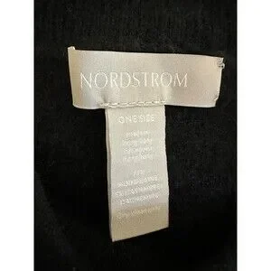 The Nordstrom women's black sleeveless cashmere and wool mock neck style poncho is a luxurious and stylish sweater that can be worn in all seasons. With a solid black color and a mock neck neckline, this one-size pullover features a unique design that is both elegant and versatile. Made from high-quality wool fabric, this poncho exudes sophistication and class, making it a perfect addition to any woman's wardrobe. The Nordstrom brand ensures exceptional quality and craftsmanship, making this sweater a timeless and chic choice for any woman looking to elevate her style.