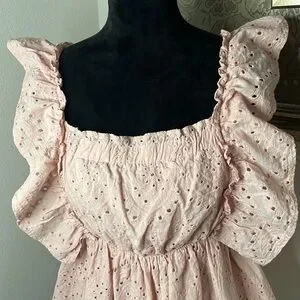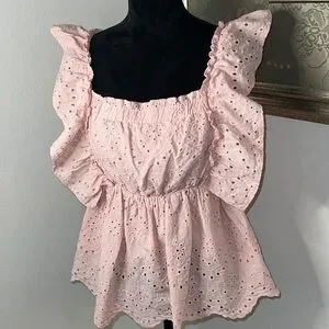 Mustard Seed peach eyelet 100% cotton top Sz M