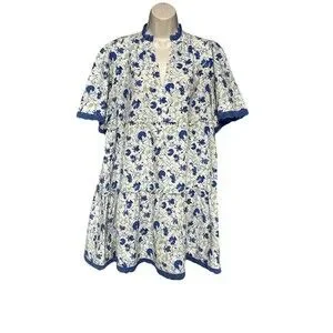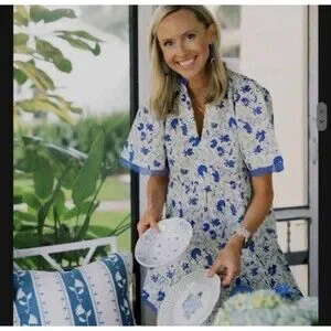 Tuckernuck Blue Linen Blend Dress XL Lace Trim Midi Preppy Summer