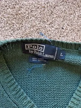 Vintage green polo sweater vest. Size large. Decent vintage condition.
