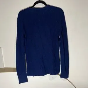 Elegant navy blue merino wool with button closure. Perfect for layering.
