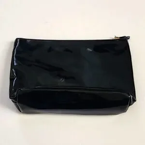 Victoria Secret Black High Glossy Patent Leather Make Up Bag Travel Purse Clutch
