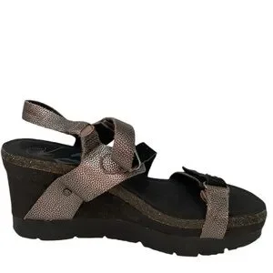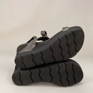 OTBT Sandals Platform Wedges Black Metallic Pewter Silver Size 9.5 Wavey