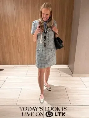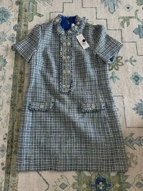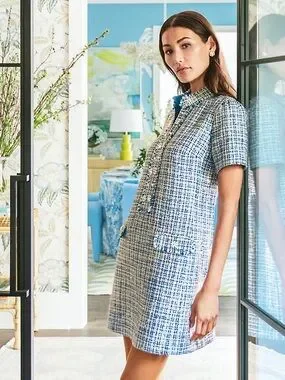 Lilly Pulitzer Teddy Boucle Blue & White Tweed Short Sleeve Shift Dress Sz8 NWT