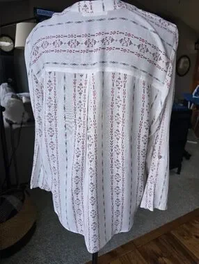 Versatile piece to wear tucked or tied at the waist.