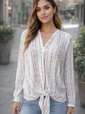 Becool - Women’s Cream Tie-Front Long Sleeve Blouse Size Med NWOT