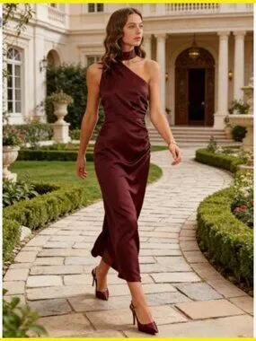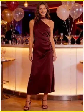 Brand new and in flawless condition — this elegant one shoulder gown delivers a sophisticated, elevated look perfect for weddings, cocktail parties, evening events, or romantic date nights. The draped silhouette is smooth, flattering, and incredibly comfortable.
