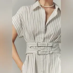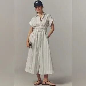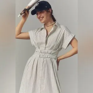 Anthropologie White Pinstripe Button-Front Midi Shirt Dress