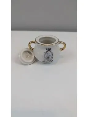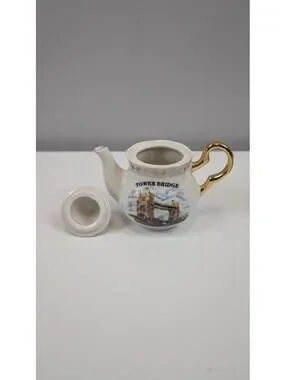This charming mini tea set is a beautiful London souvenir made from high-quality porcelain with elegant gold trim. The set is in very good condition, showcasing detailed landmark prints including Tower Bridge and other iconic London sights.
