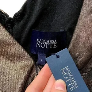 NWT Marchesa Notte Metallic V-Neck Foiled Lamé Side Pleats Dress Size 4