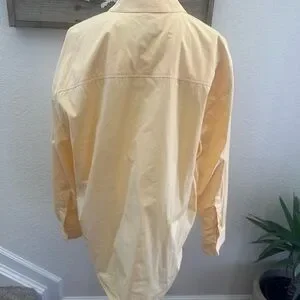 Lightweight women's button-front shirt. 100% cotton. Classic collar and long sleeves. Soft pale yellow cotton-blend. Easy, polished layering piece. Some minor marks (see all photos). Great basic!