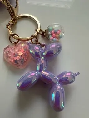 Super cute purple AirPods-style wireless earbuds set with matching silicone case and adorable charm keychain 💜✨