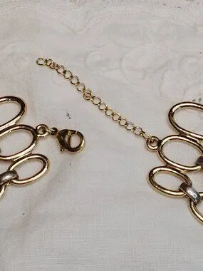 Mixed Metal Link Bib Necklace – Gold Tone w/ Silver Connectors