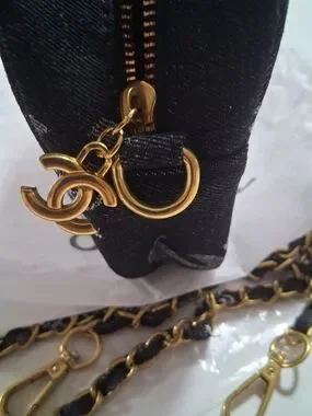 Black & Gray Logo Make Up Cosmetic Pouch with Detachable Chain Strap