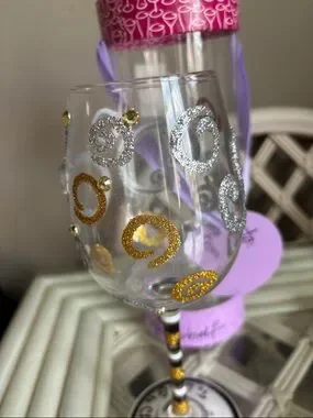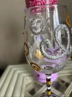 Beautiful Fun hand-painted wine glass in silver and gold.