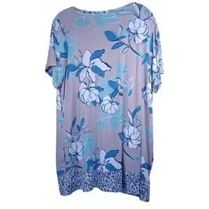 LOGO by Lori Goldstein 1X Floral Tunic Top Short Sleeve Mauve Blue Knit, Pockets