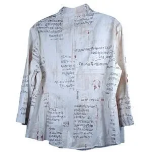 VTG Ruby Rd. Women's Sz 14 Script Print Button Up Jacket Postcard Graphic Blouse