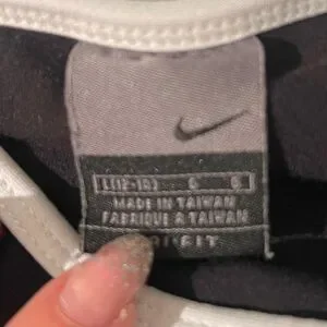 In great condition, this chic top by Nike is black with white trim. Dry fit material . Great for tennis, pickleball or working out .