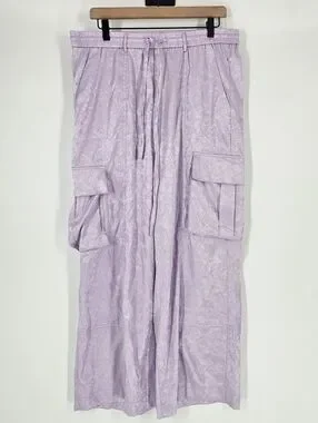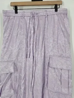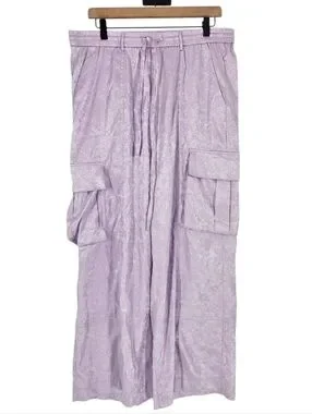 Dressed In Lala Lavender Purple Floral Satin Cargo Pants NWT