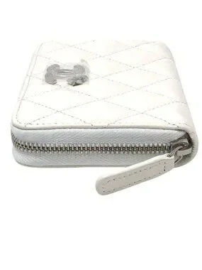This is an authentic Chanel Coco Mark Zip Around Wallet in white caviar leather. The wallet features the iconic interlocking CC logo hardware and a quilted diamond pattern design.
