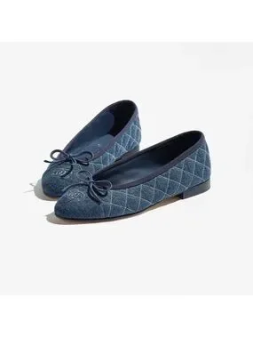 CHANEL Quilted Denim Navy Ballet Flats with Bow