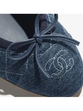 CHANEL ballet flats in quilted denim. Rounded toe with signature bow and CC embroidery. Low stacked heel for subtle lift. Elegant navy tone for refined casual looks. BRAND NEW WITH BOX message before buying size 6.5