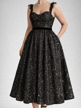 🆕Juliet Roses Black Sequin Midi Dress Size 16 Sparkly Party Lace Glam Dress NWT