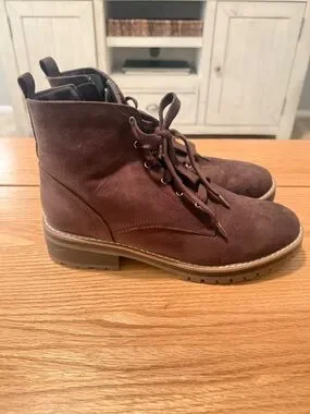 Kenzie brown combat boots in size 10. Stylish and versatile with lace-up front and functional side zipper for easy wear.