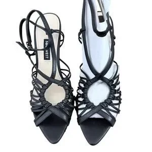 Nine West Wngagnant Ankle Strap Sandals Black Strappy Heels Shoes 6M New