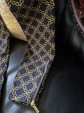 Michael Kors Navy Blue and Gold Chain-Print Skinny Pants