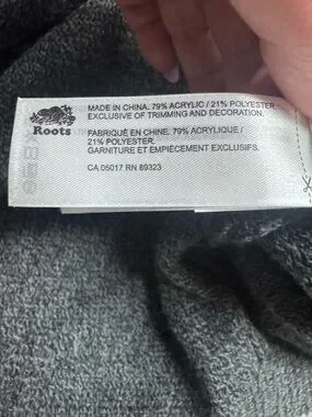 Roots Grey Cowl Neck Fringe Poncho Asymmetrical Stripe OS