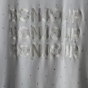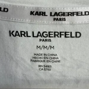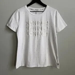 Karl Lagerfeld Paris Embellished Bonjour T-Shirt in White. Women’s Size Medium. Excellent preowned condition. Smoke free home. Retail $79.