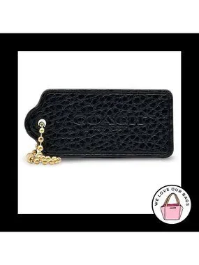 2.25" COACH NEW YORK Black Pebbled Leather Brass Fob Bag Charm Keychain Hang Tag