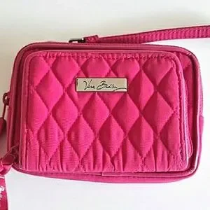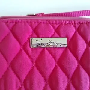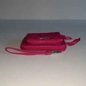 Enjoy this beautifully quilted Vera Bradley On The Square bright fuchsia wristlet! Designed with 2 zip closures: the outer compartment has 3 card slots, 1 ID slot & a slip pocket for cash; the main compartment is an open space. The wrist strap is detachable and can be clipped on the left or right side. In new condition except it is missing the shoulder strap. As always, from a pet/smoke-free home. :)