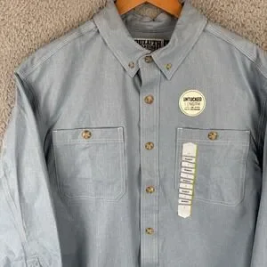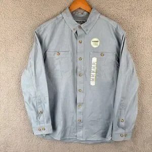 NEW Duluth Trading Shirt Mens Large Light Blue Untucked Relaxed Fit Button Down