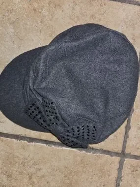 Women’s- Gray- Wool Blend- Newsboy- Cap with Studded Bow Accent